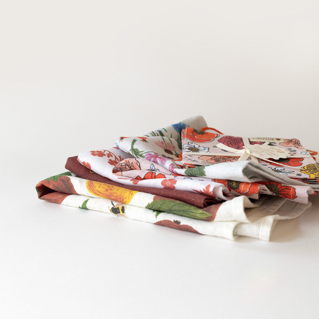 Our linen is woven from ethically sourced, organic flax grown in Europe ~ a fabric known for its natural durability and sustainability. Unlike most textiles, linen fibers are actually stronger when wet, making them ideal for everyday use. With each wash, your linen towels and napkins become softer and more inviting, while still holding their strength.